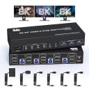 8K@60Hz 4-portowy przełącznik KVM USB 3.0 z trzema monitorami i 3 portami DisplayPort do 4 komputerów udostępniających 3 monitory i 3 porty USB 3.0, audio i mikrofon