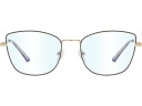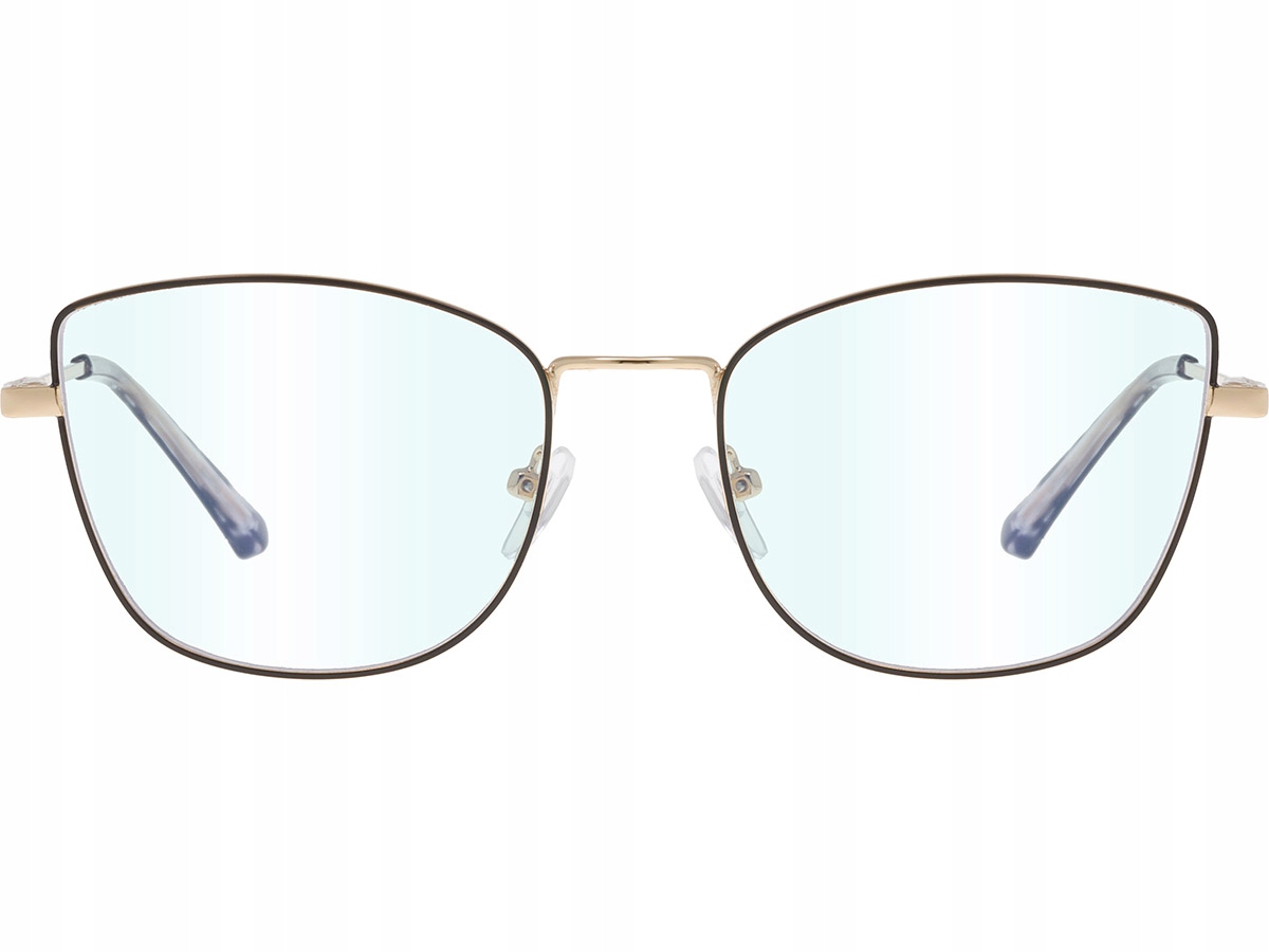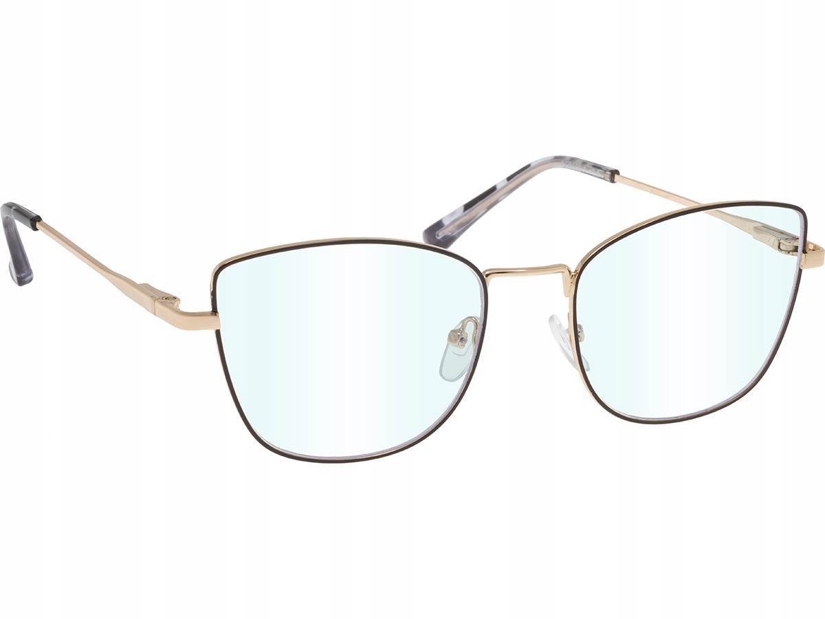 Czarno-złote okulary z metalową oprawką to połączenie klasycznego szyku i nowoczesnych rozwiązań. Kontrastowy design i delikatne zdobienia dodają im wyjątkowego charakteru, a soczewki z filtrem niebieskiego światła dbają o komfort Twoich oczu.
