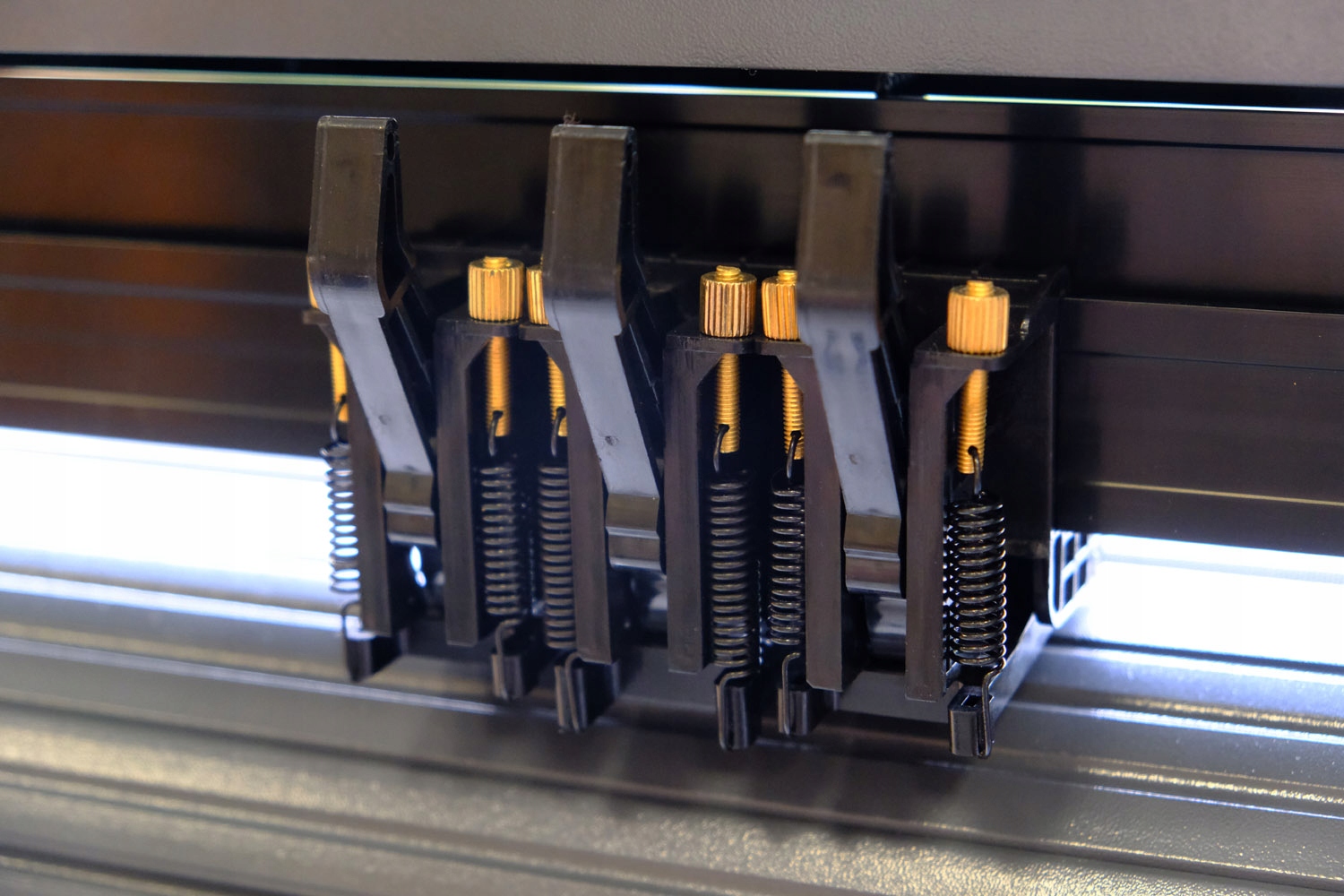 Jest wyposażony w rolki dociskowe (pozwala to na precyzyjne ułożenie i pozycjonowanie materiału pod nożem), rolka prowadząca folię jest na całej szerokości plotera, natomiast panel LCD z modułem sterującym pozwala zmienić parametry pracy w czasie rzeczywistym.