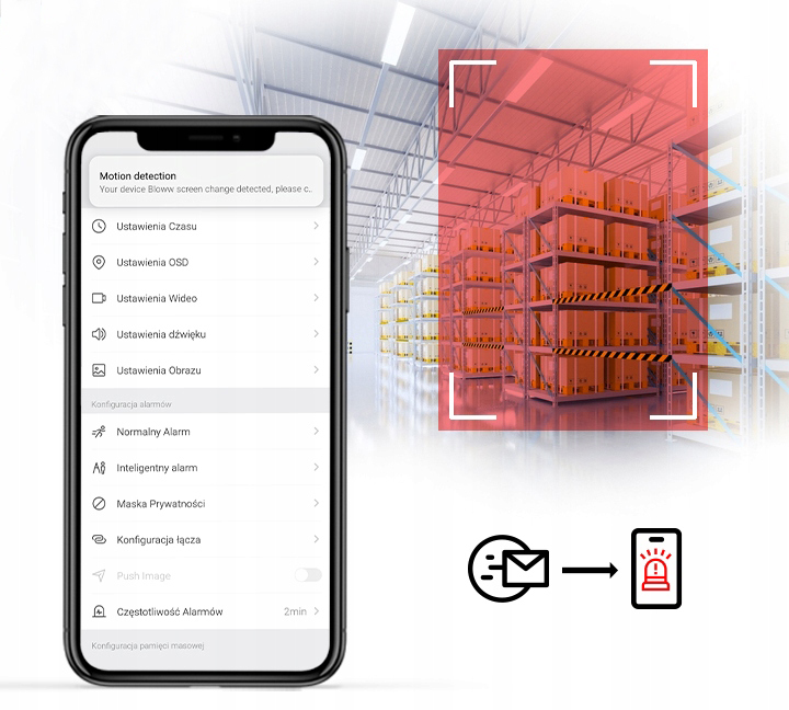 Produkt posiada detekcję obrazu! - w przypadku naruszenia obserwowanego przez kamerę pola lub zdarzeń AI (sztuczna inteligencja), system poinformuje nas o tym poprzez powiadomienie w aplikacji mobilnej BitVision lub wiadomość na wybrany adres e-mail. Dzięki powiadomieniu w przypadku próby grabieży Twoich kosztowności możesz zacząć działać znacznie wcześniej!