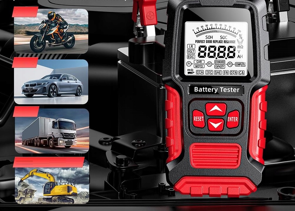 Idealny do diagnostyki akumulatorów w motocyklach, samochodach osobowych, ciężarówkach i pojazdach inżynieryjnych. Obsługuje wszystkie typy akumulatorów kwasowo-ołowiowych 12V i 24V (nie testuje baterii litowych)."