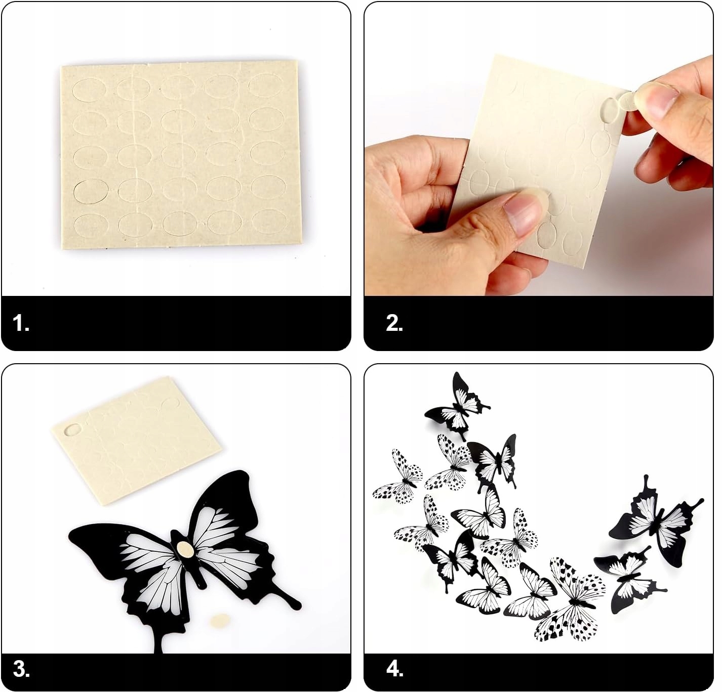 ✔️ Motyle nakleja się oddzielnie, dlatego można wykonać z nich dowolną kompozycję.