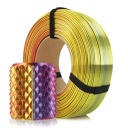ReFill trójkolorowego filamentu 3D PLA Magic Silk Carnival. PLA Magic Silk to filament do druku 3D opracowany na bazie PLA-Silk. Filament PLA Magic Silk Carnival łączy w sobie trzy równoległe kolory w jednej nitce filamentu (żółty, niebieski oraz fuksję) dzięki procesowi koekstruzji. Gotowe wydruki mienią się kolorami tworząc „magiczne efekty” wizualne.