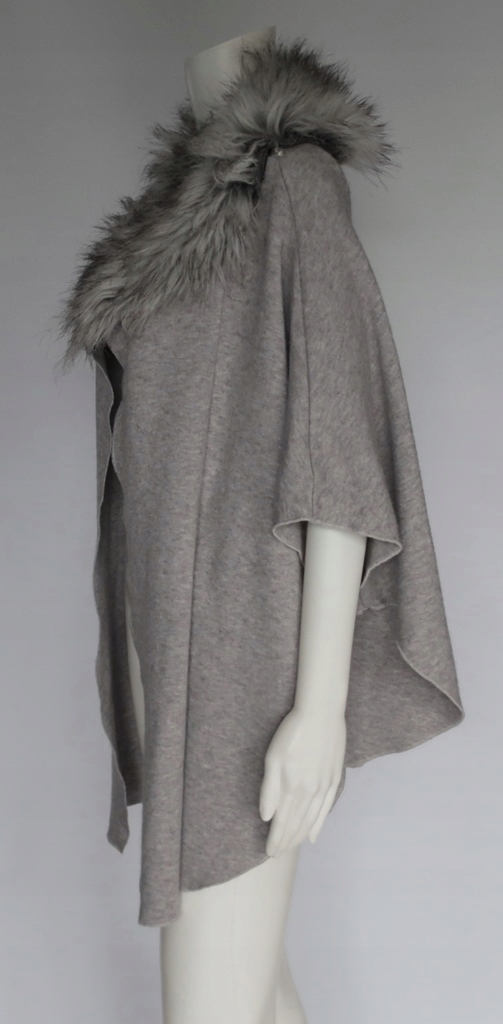 PONCHO DAMSKIE - W KOLORZE SZARYM, MELANŻOWE, OZDOBIONE