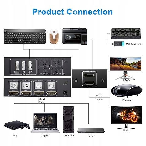 4-PORTOWY PRZEŁĄCZNIK HDMI+ DISPLAYPORT KVM 4X USB