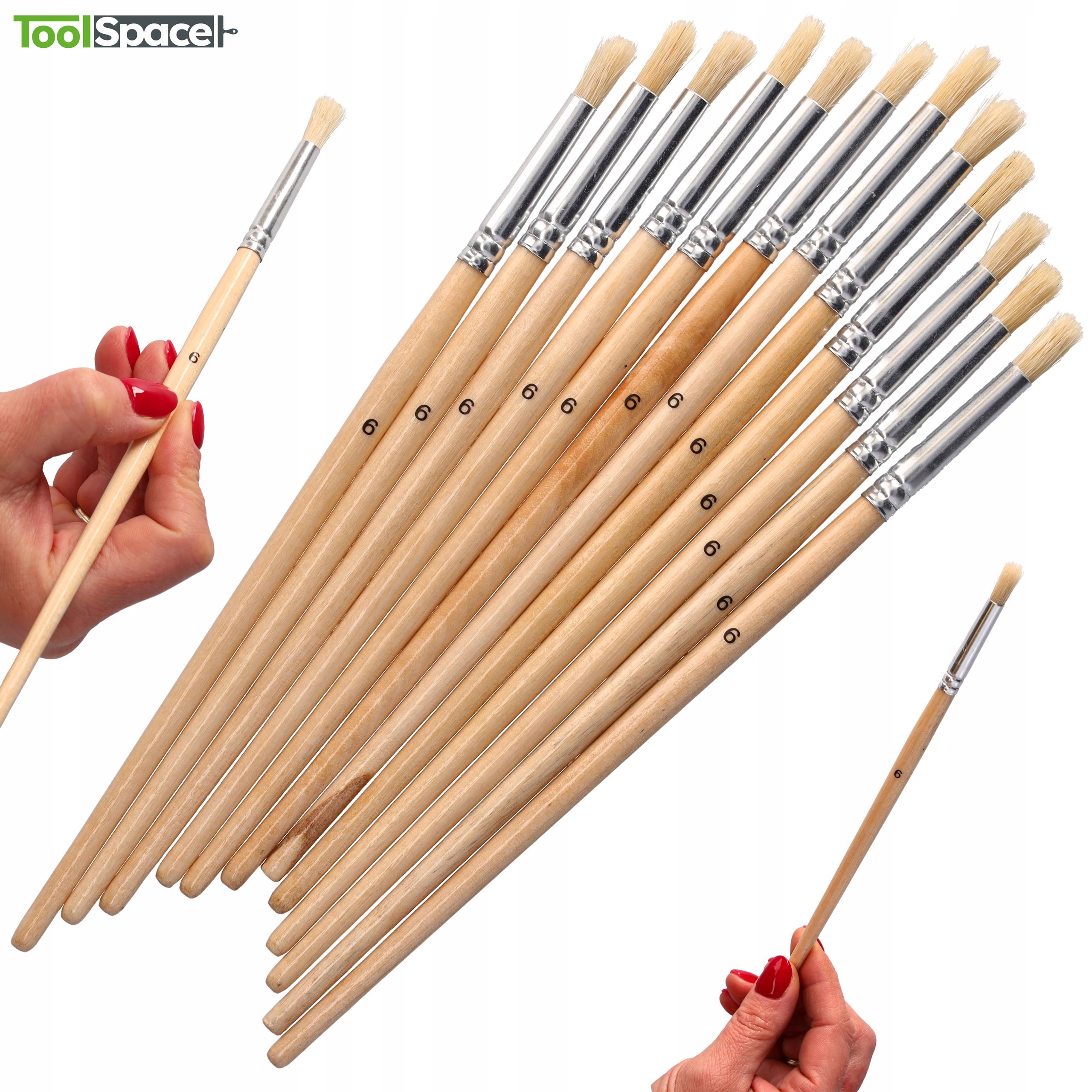 Pędzel paskowiec okrągły 6 mm marki ToolSpace to doskonałe narzędzie malarskie przeznaczone do wykonywania precyzyjnych prac. Charakteryzuje się wysoką jakością wykonania, co gwarantuje trwałość i wygodę użytkowania. Idealny do detali, precyzyjnych linii oraz drobnych wykończeń.