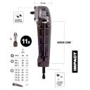 Благодаря использованию рукоятки ø " HEX головка адаптирована к работа с дрелью,шуруповертом и ударными крышками. Ручка с покрытием резиновые элементы обеспечивают надежное сцепление и не нагреваются во время работы. Инструментальный наконечник он имеет внутренний магнит, поэтому аксессуары надежно удерживаются при работе в труднодоступных местах.
