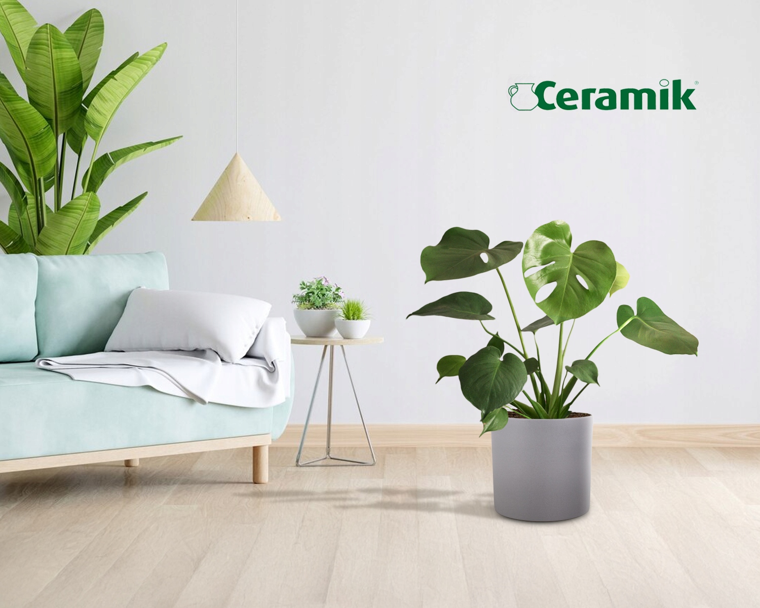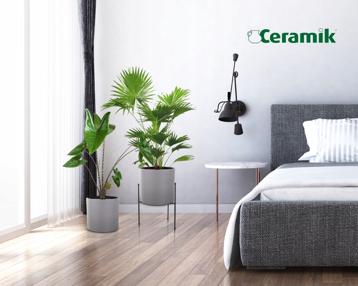 Ten model polecamy szczególnie do roślin takich jak palma kokosowa, zamiokulkas czy fikus lirolistny, które w połączeniu z matową szarością donicy tworzą efektowne dekoracje.