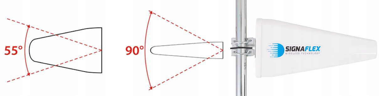 Antena zewnętrzna SIGNAFLEX od new-electric posiada zysk energetyczny 20 dBi.
