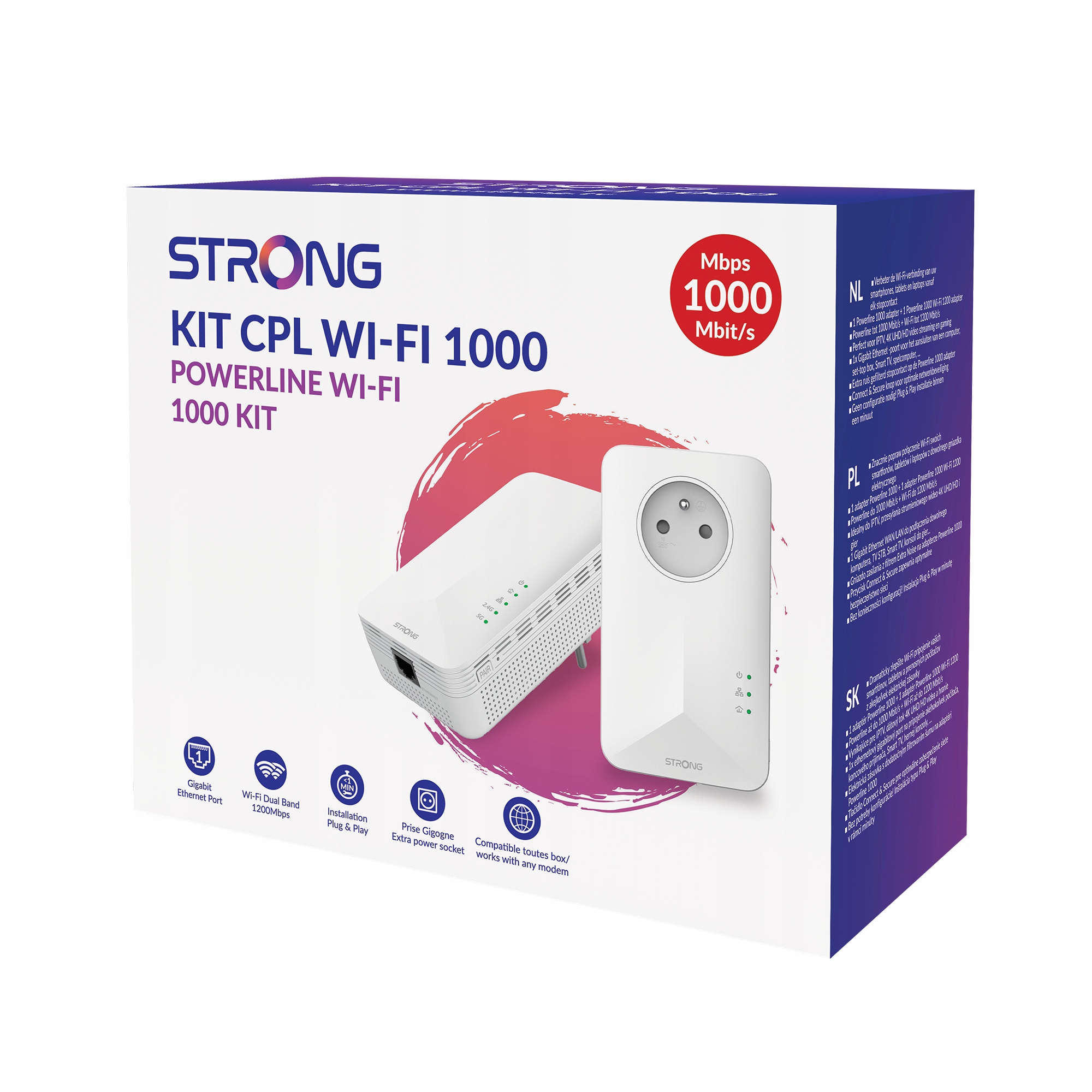 Zestaw Powerline Wi-Fi 1000 zawiera jeden adapter Powerline 600 i jeden adapter Powerline Wi-Fi 1000. Tworzy w bardzo prosty sposób szybki hotspot Wi-Fi o prędkości do 1000 Mbit/s wykorzystując istniejącą instalację elektryczną w Twoim domu. Po prostu podłącz adapter Powerline 1000 do istniejącego modemu internetowego przez port Ethernet, a natychmiast będziesz mieć dostęp do Internetu w dowolnym gniazdku elektrycznym. Następnie za pomocą adaptera Powerline Wi-Fi 1000 możesz utworzyć nowy hotspot Wi-Fi w wybranym pokoju i rozszerzyć zasięg domowej sieci Wi-Fi w ciągu kilku minut. Nie są wymagane żadne nowe przewody! Podłącz komputery, elektronikę użytkową, smartfony, tablety i dodatkowe urządzenia sieciowe do Internetu, po prostu korzystając z gniazdek elektrycznych. Instalacja jest niezwykle łatwa dzięki zerowej konfiguracji i nie wymaga specjalistycznej wiedzy. Z zestawem Powerline Wi-Fi 1000 stwórz własny hotspot Wi-Fi o prędkości do 1000 Mbit/s w dowolnym gnieździe elektrycznym w swoim domu i jeszcze bardziej rozszerz swoją sieć Wi-Fi.