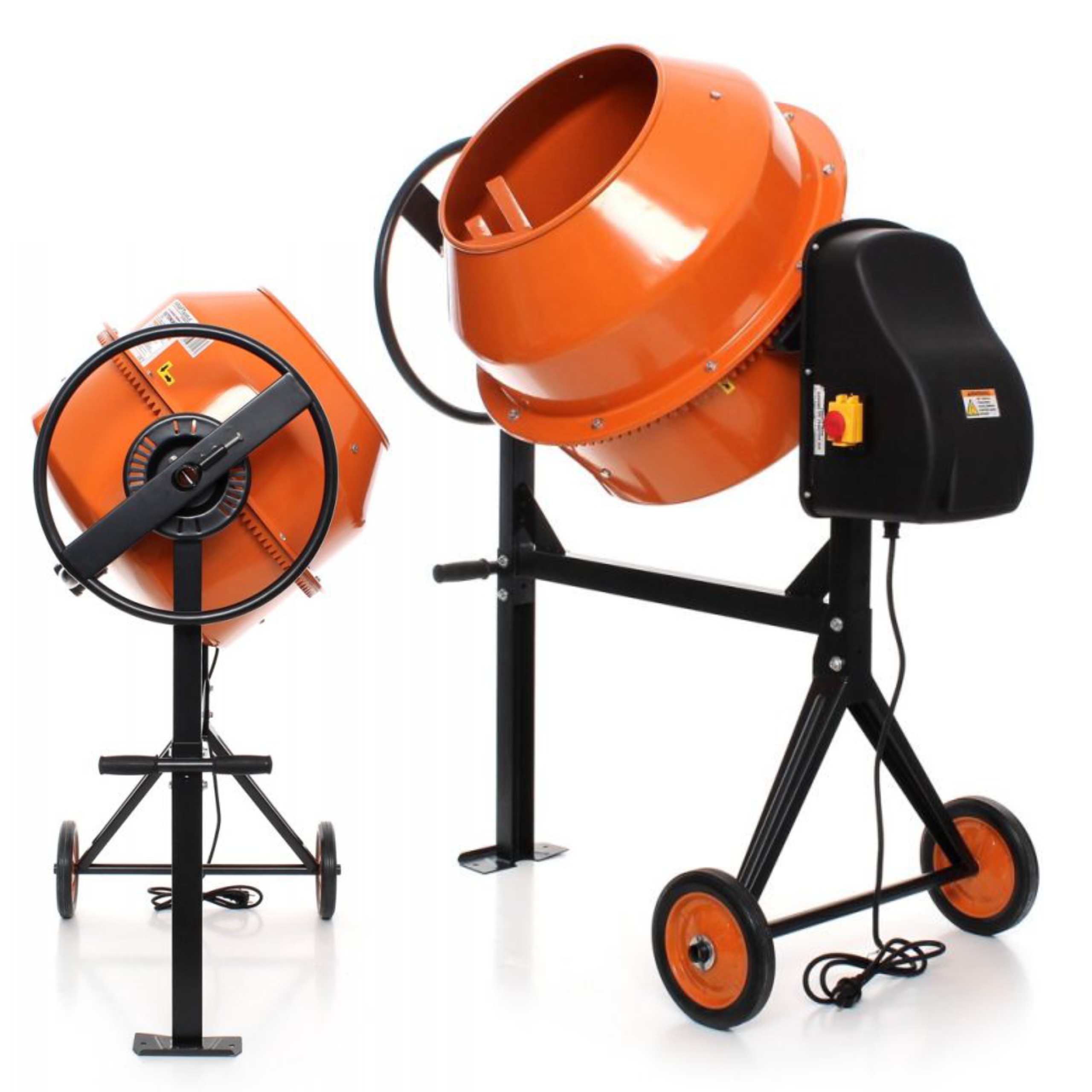 Urządzenie posiada bęben o pojemności maksymalnej 140L. Bęben betoniarki wykonany jest z jednego kawałka stalowej blachy tłoczonej z dodatkowo wzmocnionym dnem, aby zabezpieczyć przed ukręceniem. Do przechyłu bębna zastosowaliśmy koło co ułatwia korzystanie z urządzenia. Posiada też żeliwny wieniec i żeliwną zębatkę zapewniając w ten sposób długie i bezawaryjne użytkowanie.