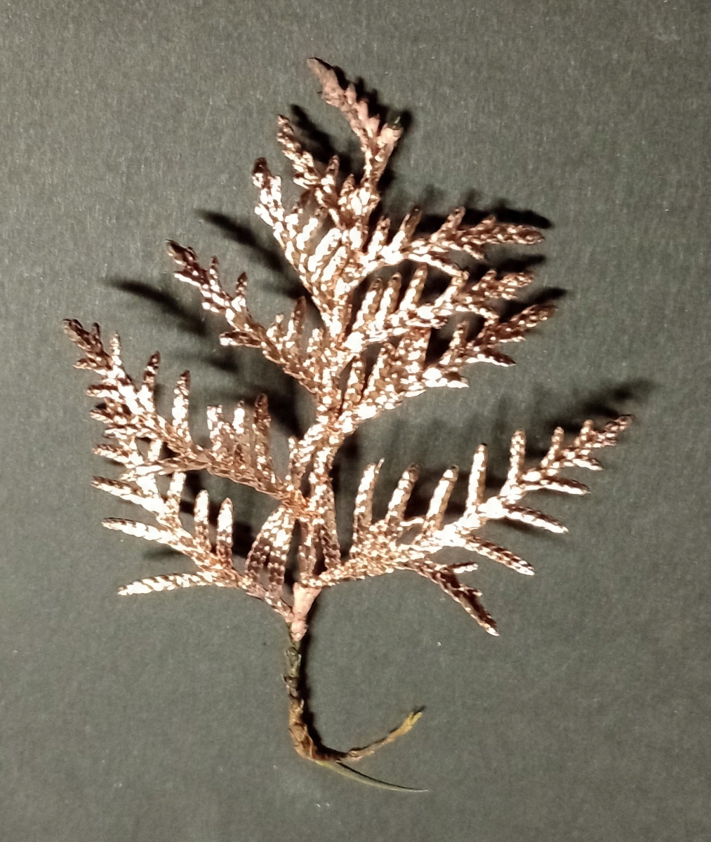 Ниже показано, как можно выполнить металлизацию непроводящего объекта с использование этой графитовой краски. В качестве объекта использовалась веточка туи.