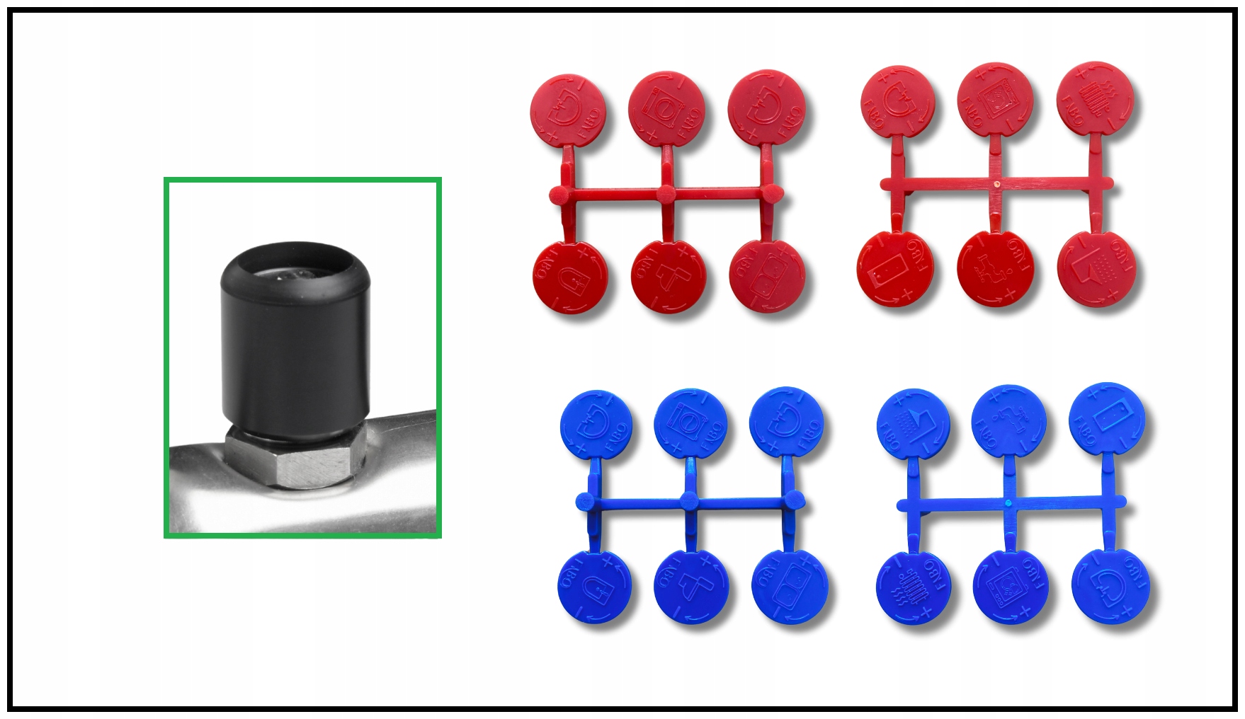 Wszystkie rozdzielacze posiadają pokrętła ze specjalną wkładką na kapsle umożliwiającą oznaczenie ciepłej lub zimnej wody odpowiednim kolorem, a także symbolem odbiornika (umywalka, zlew, toaleta, wanna, prysznic, pralka, bidet, grzejnik, zmywarka, kran).