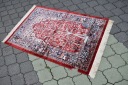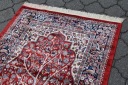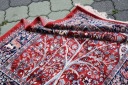 Состояние: использованный ковер сохранился в состоянии, как на фотографиях. Имеет повреждения, видимые на фотографиях, и загрязненные кисточки в углу