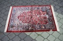 На следующем аукционе я предлагаю вам беспрецедентный, сделанный из искусственного шелка в машинной технике, подписанный в руне персидский ковер дизайн.