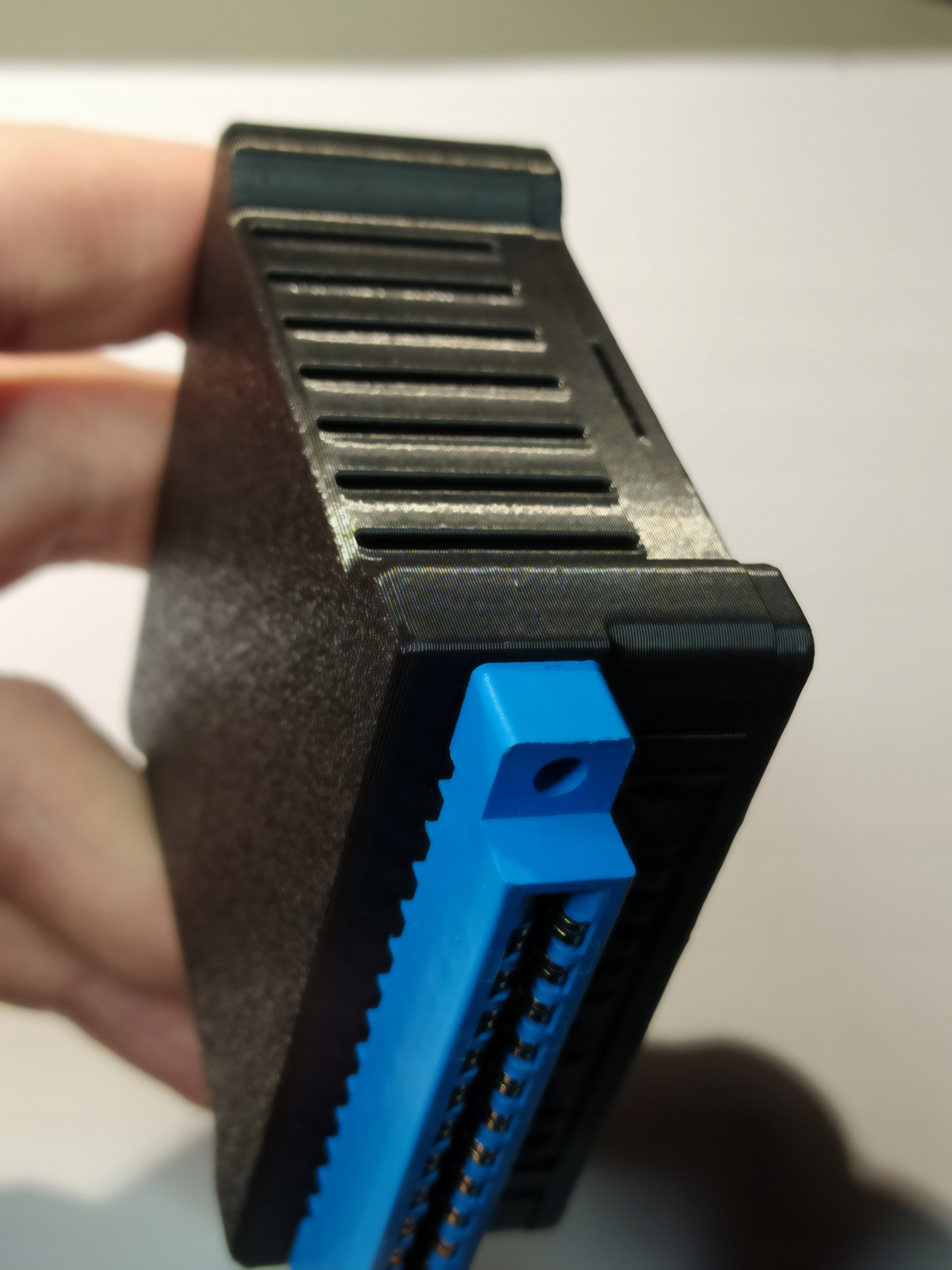 Корпус по сравнению с оригинальным дизайном имеет дополнительные вентиляционные отверстия для лучшего отвода тепла от модуля ESP.