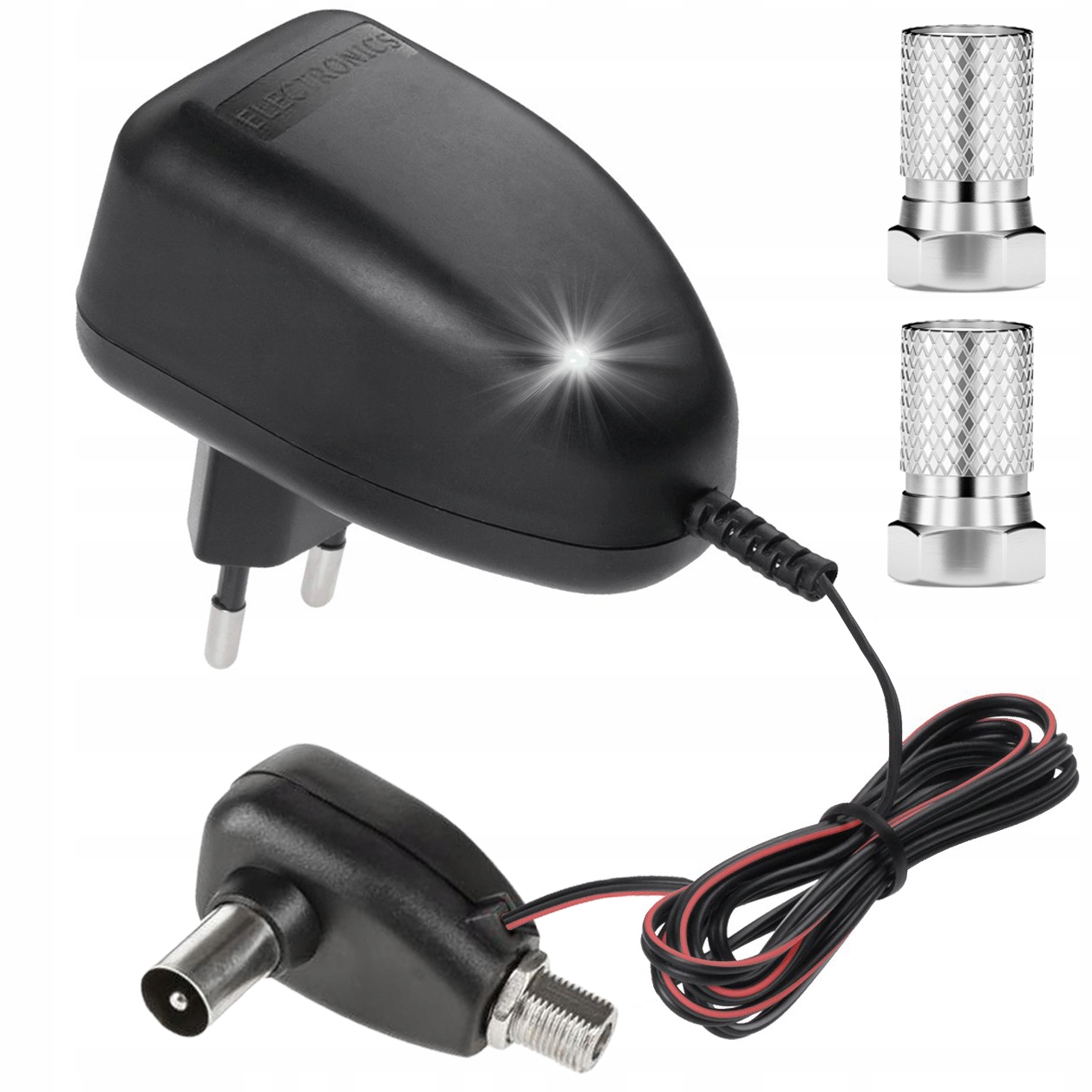 Zasilacz został wyposażony w zintegrowane gniazdo typu F, co znacznie ułatwia proces instalacji w systemie antenowym. Dzięki temu rozwiązaniu podłączenie zasilacza staje się proste i intuicyjne. Wystarczy wkręcić kabel koncentryczny z wtykiem F do gniazda F, aby zapewnić stabilne zasilanie wzmacniacza. To zintegrowane gniazdo eliminuje potrzebę stosowania dodatkowych adapterów czy narzędzi, co przyspiesza i upraszcza konfigurację całego systemu antenowego. Takie rozwiązanie gwarantuje nie tylko wygodę użytkowania, ale także pewność prawidłowego połączenia, co jest kluczowe dla niezawodnego działania całego układu.