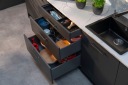 Szuflady Matrix S Slim zwiększają powierzchnię funkcjonalną mebli. Idealnie proste i cienkie boki (13 mm) sprawiają, że pojemność szuflad jest większa, przy jednoczesny zachowaniu stabilności konstrukcji oraz udźwigu do 35 kg. Trzy wysokości boków 84mm 135mm 199mm pozwalają na elastyczne i wszechstronne zastosowanie systemu od kuchni po garderobę. Stonowana biała, szara, antracytowa i czarna kolorystyka umożliwia adaptację szuflad w każdym wnętrzu bez względu na jego aranżację.