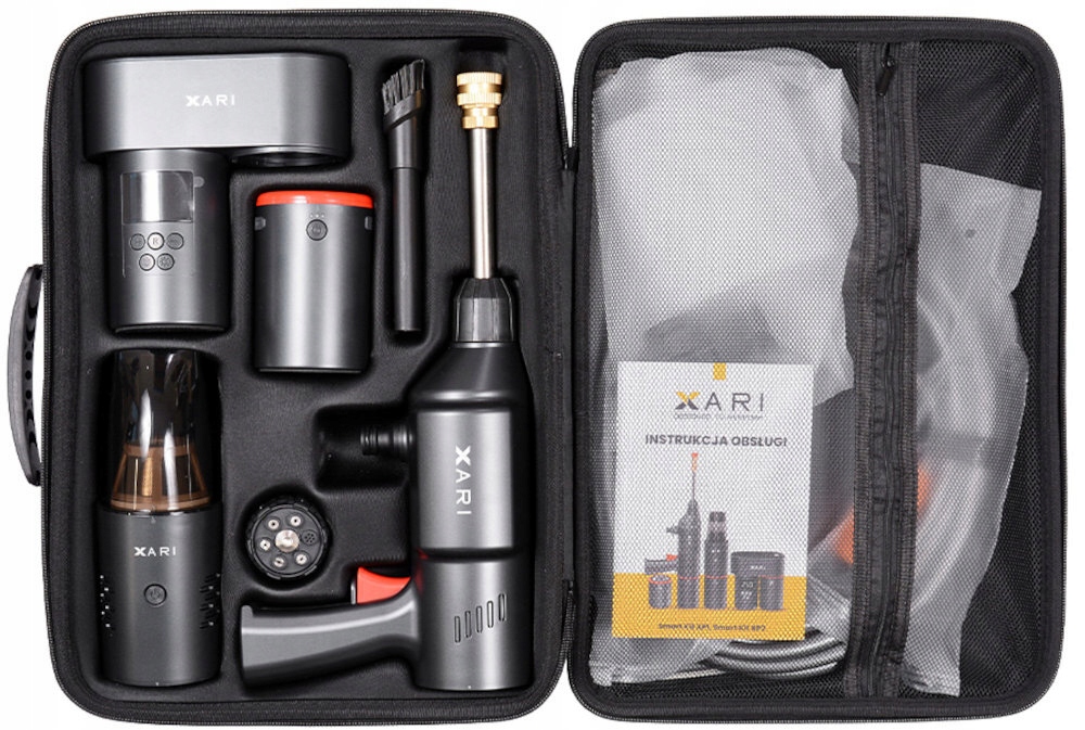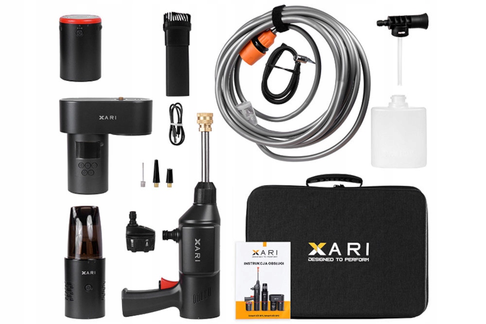 Xari Smart Kit XP1 to wielofunkcyjny zestaw wykonany z wysokiej jakości materiałów nadający się nie tylko do pielęgnacji samochodu, ale także do użytku w ogrodzie, domu oraz podczas wyjazdów na biwak. Z łatwością napompujesz opony, umyjesz karoserię pojazdu i odkurzysz wnętrze, dbając o porządek i świeżość w aucie. Jednak jego zastosowania na tym się nie kończą!