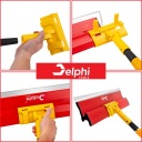 Длина палки позволяет работать в высоких помещениях без необходимость использования лестниц или лестниц. Палка разделена на 5 частей, которые скручиваются с и общая длина зависит от количества используемых деталей.