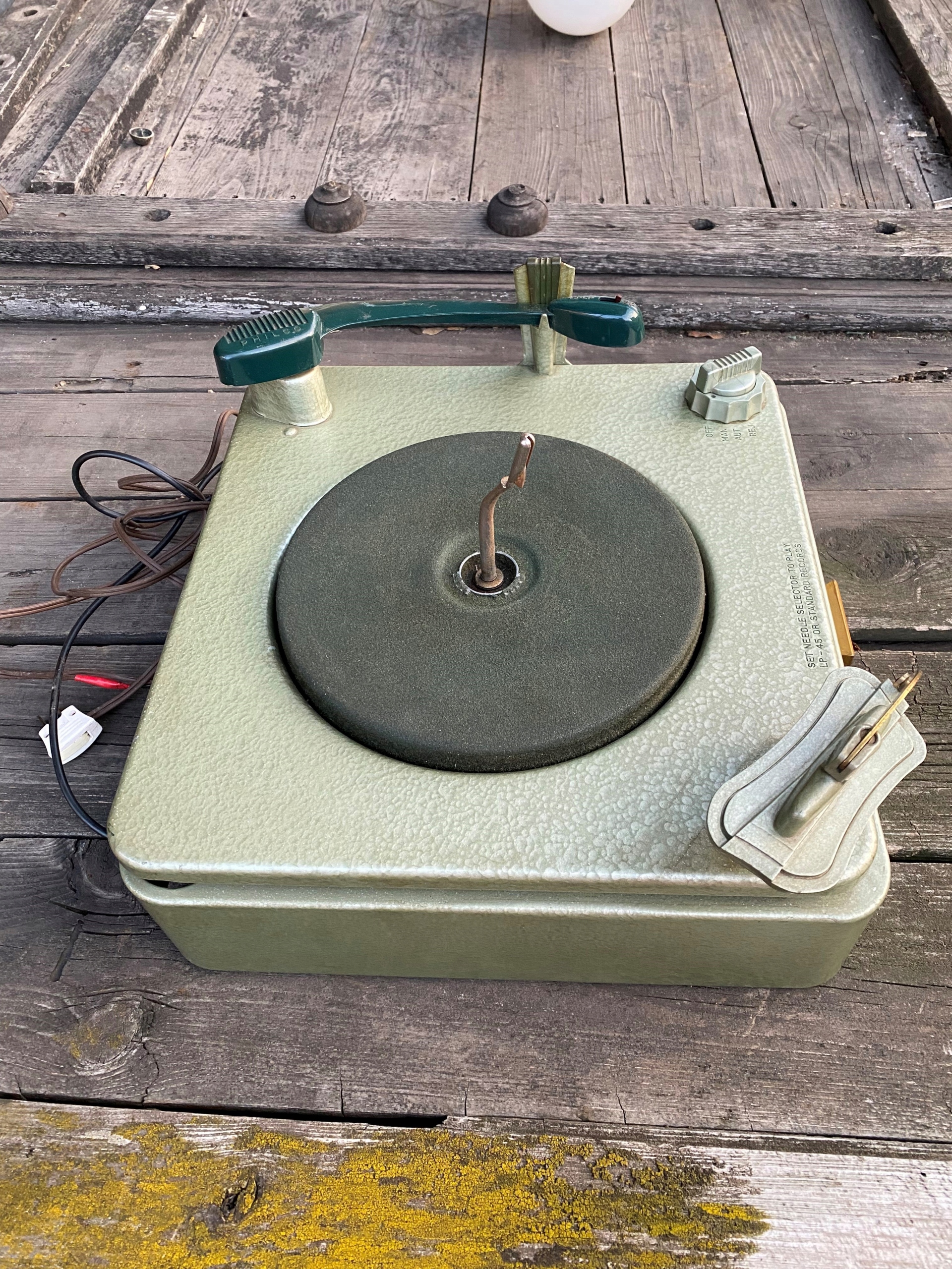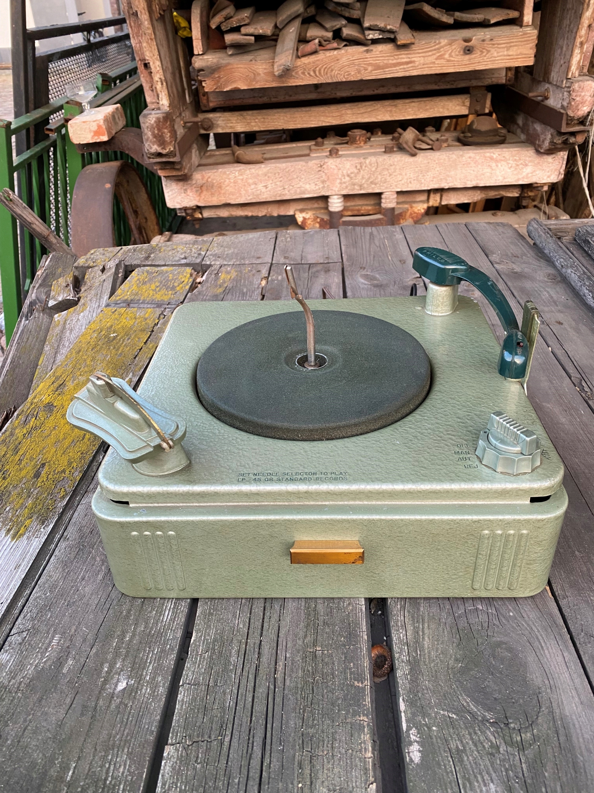 Zabytkowy gramofon. Do renowacji. Wymiary; wys.16 x 34 x 32 cm