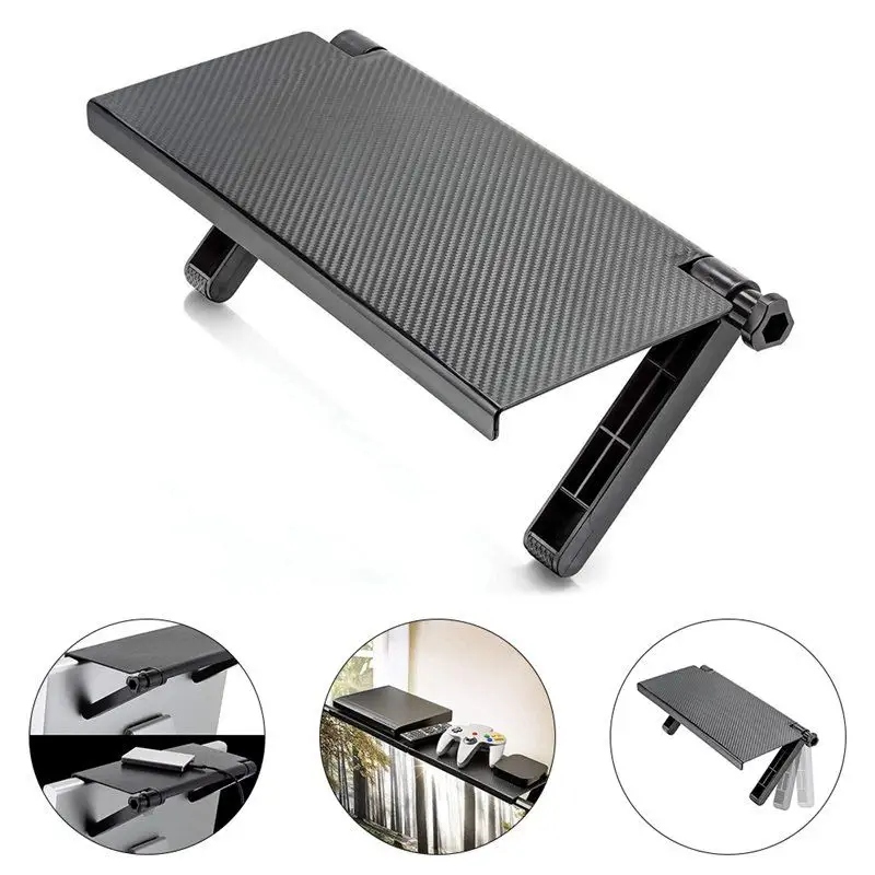 ✔️ Montaż półki nie wymaga żadnych narzędzi. Podpórki są regulowane, dzięki czemu półkę można dopasować do własnych potrzeb. Wystarczy położyć na górnej części ekranu, wyregulować nóżki i zablokować dokręcając pokrętło.