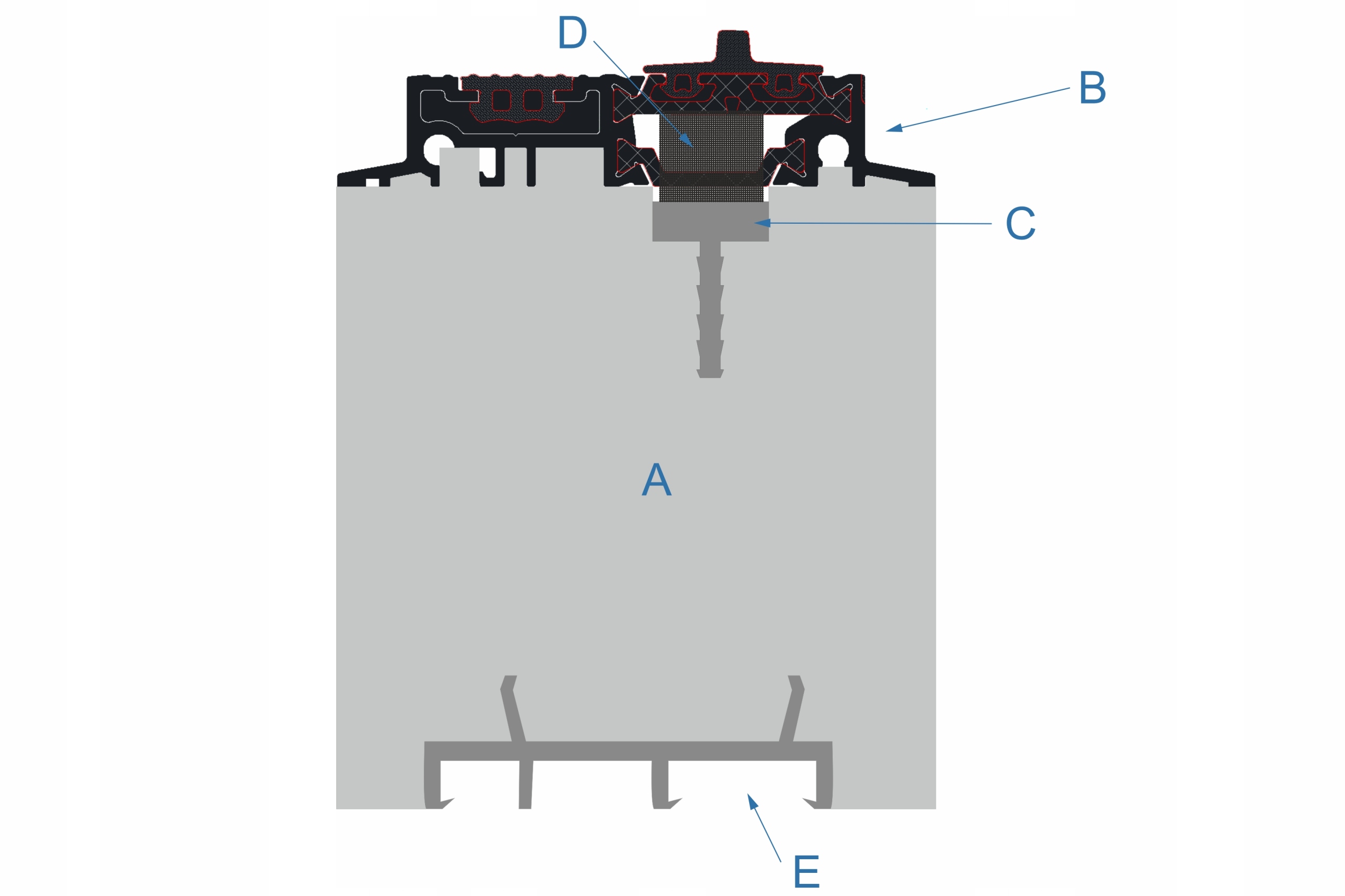 B - próg drzwiowy (na zdjęciu próg drzwiowy Aluprof MB-86)