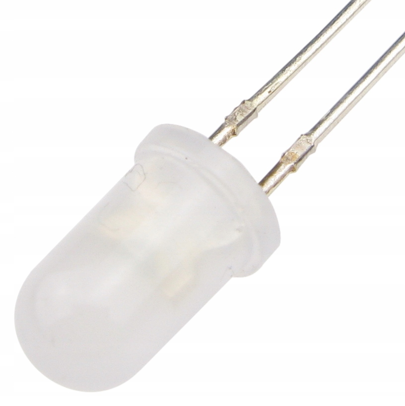 Dioda LED 5mm. Kolor: biały zimny. Uf=3.20V, If=20mA, kąt=60°, jasność około 300-550mcd. Cena za 10 szt.
