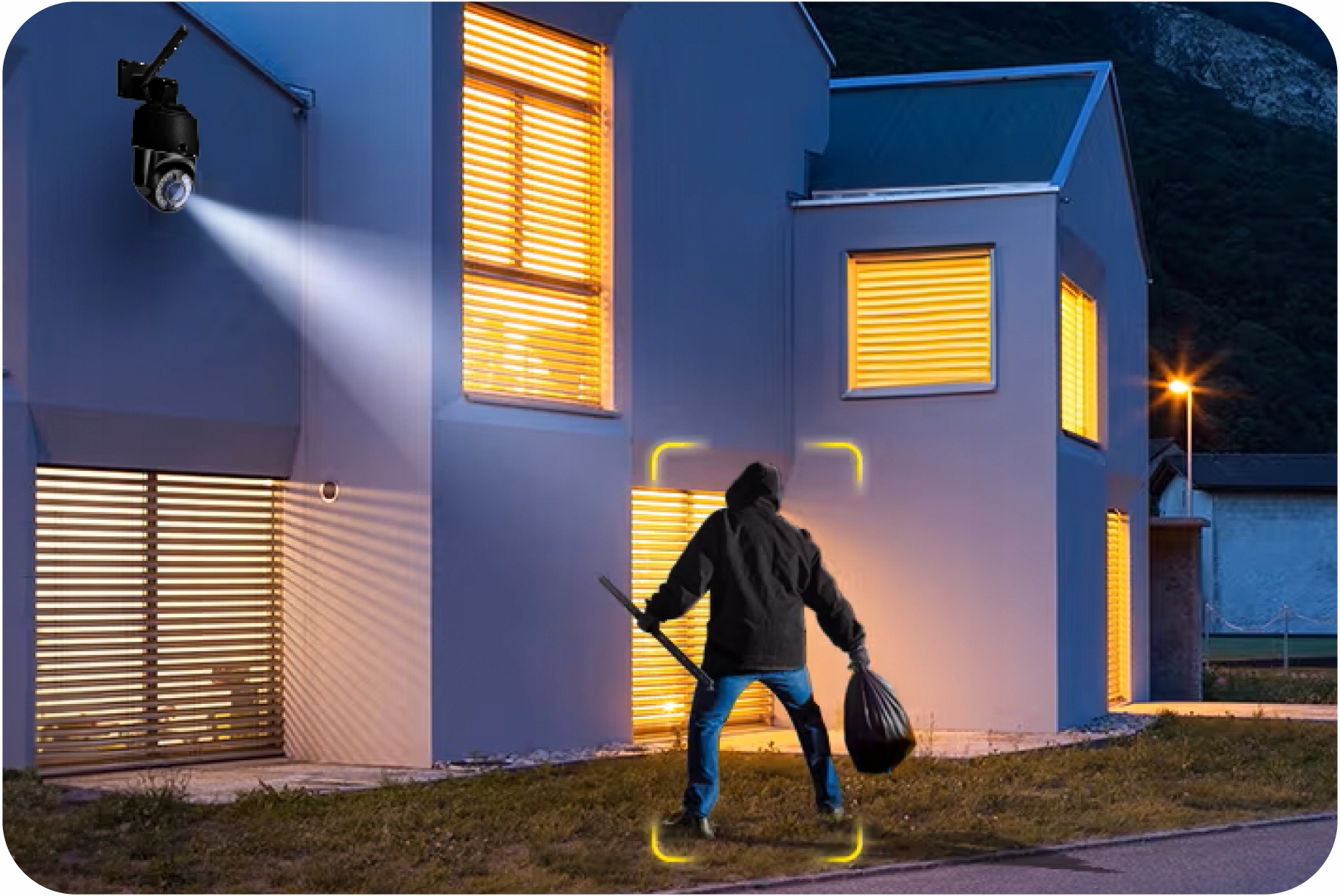 Повысить безопасность и полицейскому! Наша камера не только фиксирует каждое движение, но и активирует яркий свет предупреждающие сигналы синего и красного цветов, имитирующие полицейские сигналы. Эта функция работает автоматически при обнаружении движения, эффективно отпугивая незваных гостей и обращая внимание на угроза. Идеальное решение для тех, кто хочет позаботиться о защите своего дома или собственности в умный и современный способ!