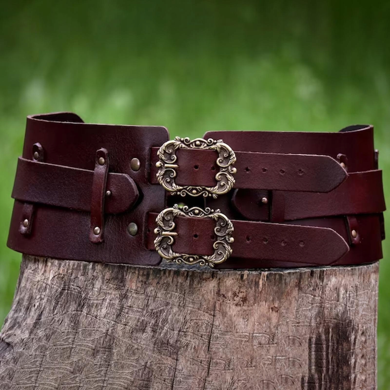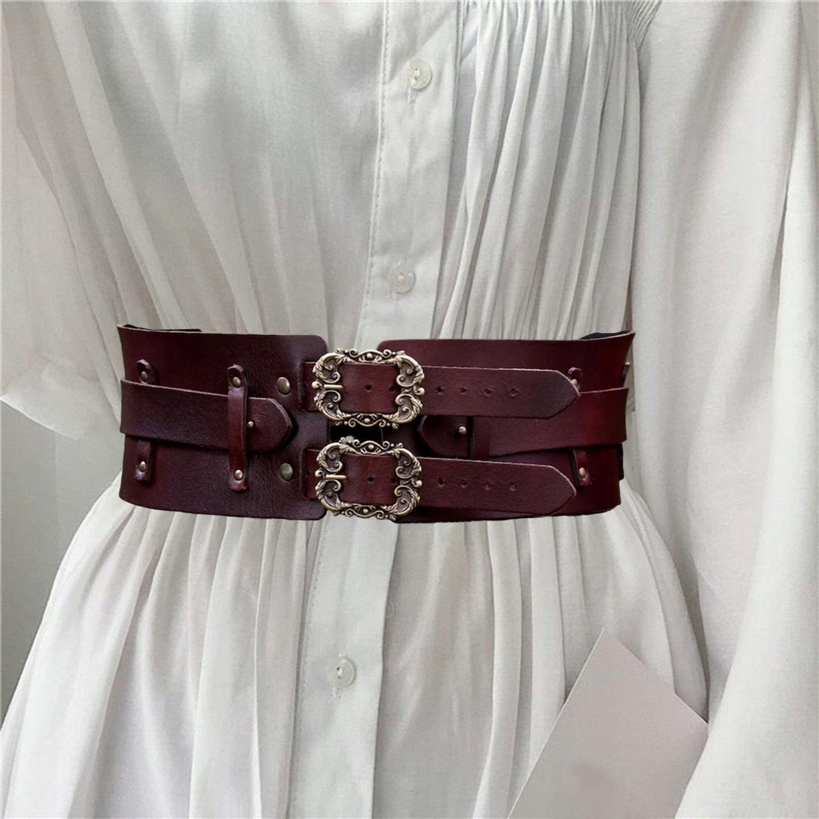 Gorset damski skórzany pasek steampunk szeroki pasek na rocznice koszula sukienka brązowy