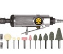 Zawartość zestawu: szlifierka pneumatyczna 81108, złącze do węża, redukcja, klucz do uchwytu narzędziowego x2, kamienie szlifierskie x10