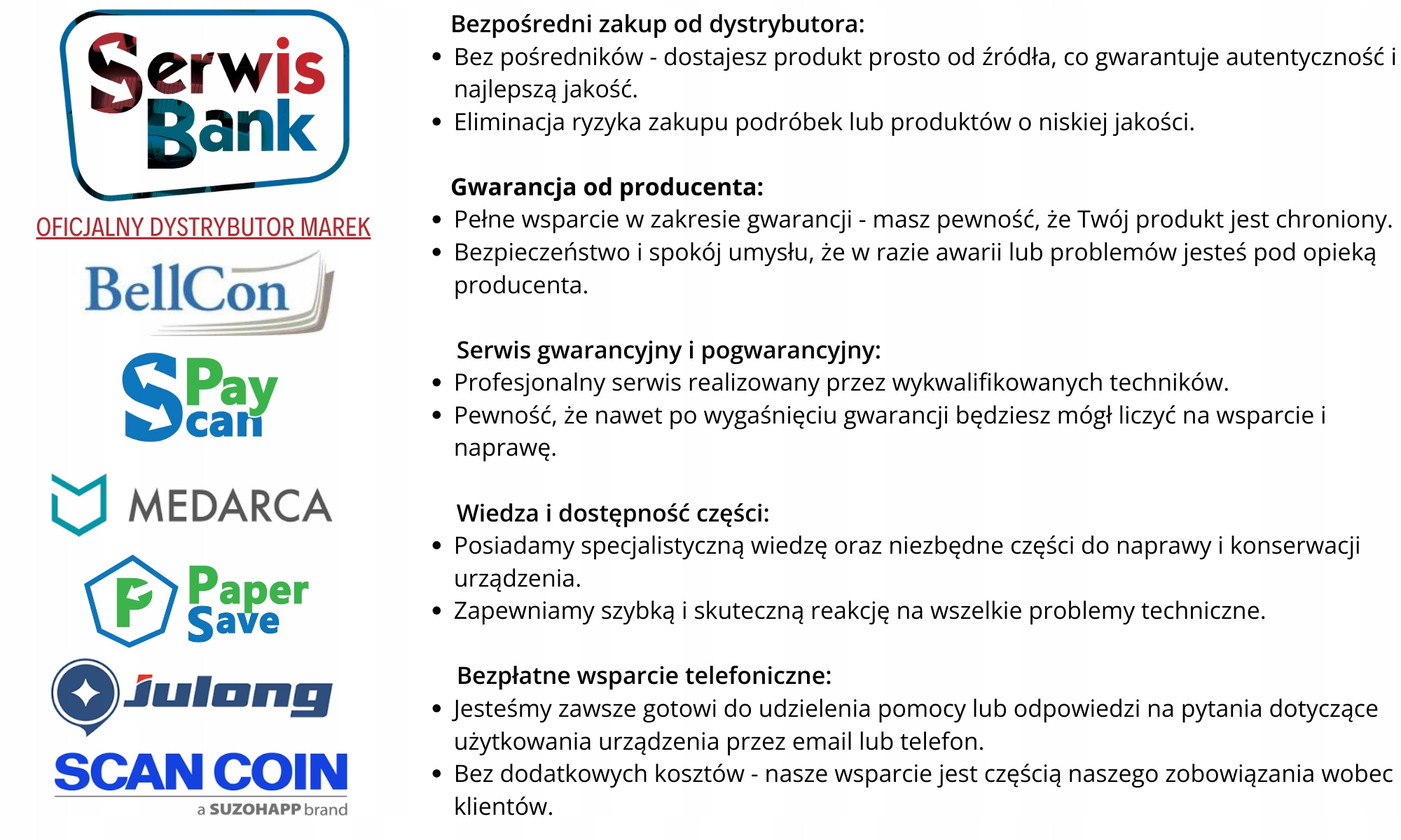 - Weryfikacja banknotów opiera się na zaawansowanym sprawdzaniu zabezpieczeń: