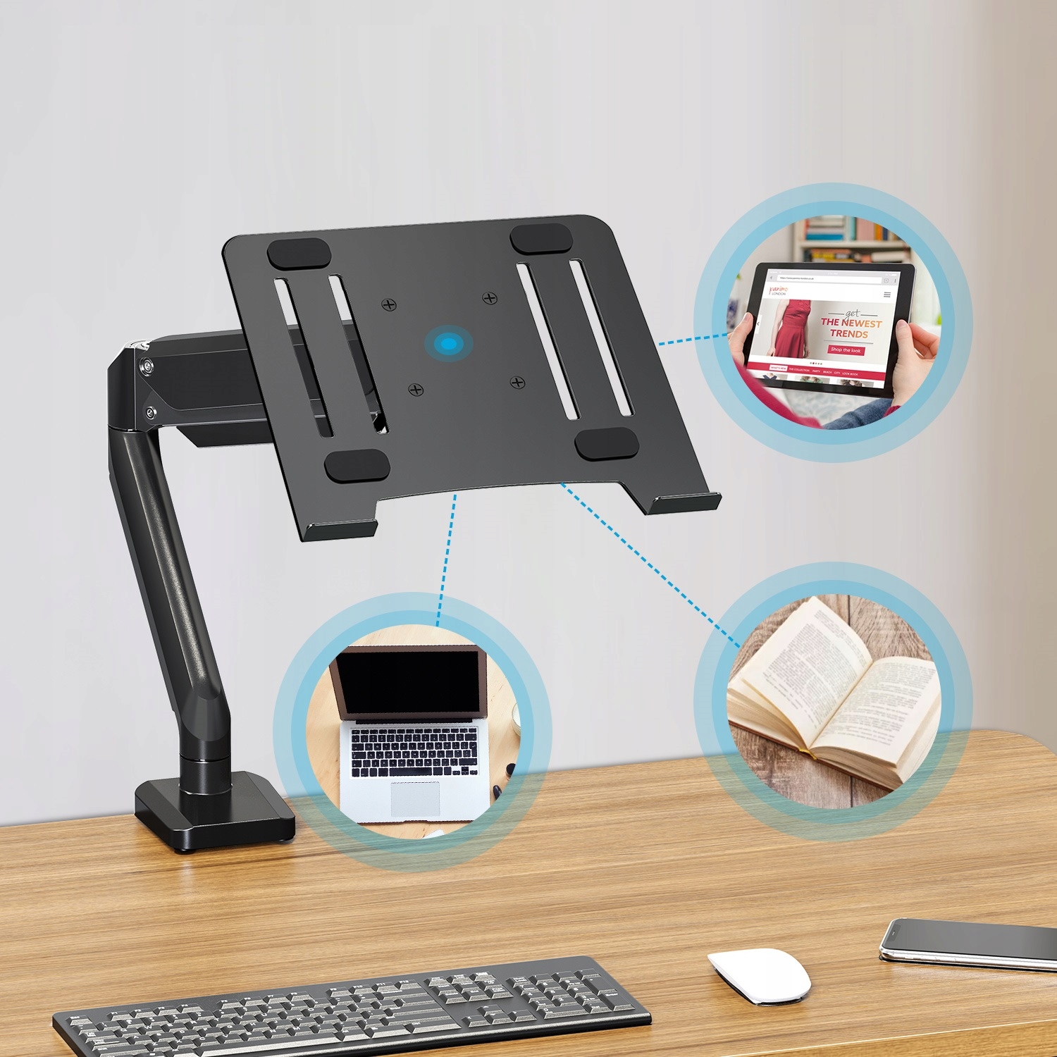 Regulowany mechanizm pozwala dostosować wysokość i kąt monitora lub laptopa.