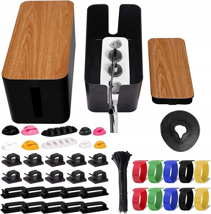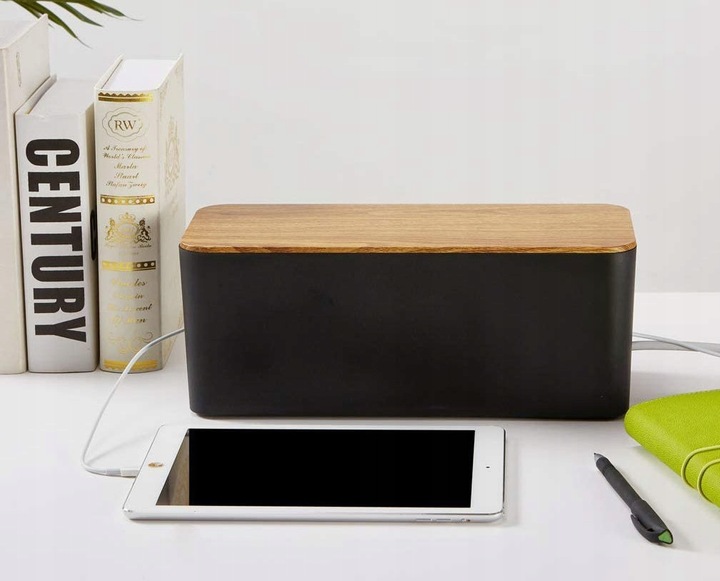 Kabel Box jest świetnym rozwiązaniem tego typu problemów. Umieść swoją listwę zasilającą w pojemniku (nie ma potrzeby odłączania przewodów) zamknij pokrywę i gotowe! Zaprojektowane otwory na przewody (po jednym na stronę) umożliwiają najlepsze zarządzanie okablowaniem. Zrób porządek z przewodami i zasilaczami dzięki Kabel Box! Kabel Box jest kluczowym rozwiązaniem dla potrzeb zarządzania okablowaniem. Nadmiar przewodów, zasilaczy może okazać prawdziwym koszmarem podczas ich porządkowania. Nigdy więcej!