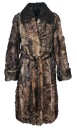 Futro damskie w brązowym kolorze, wykonane ze skóry futerkowej z kozy zapinane na keski, górą wykończone kołnierzem pod szyję. Uszyte i zaprojektowane w firmie ELEGANCJA. Długość za kolana, lekko rozkloszowane, rękaw z mankietem odwijanym, kieszenie wygodne lekko skośne.