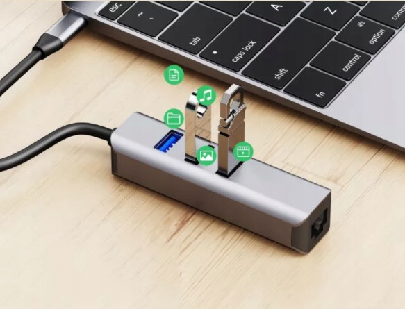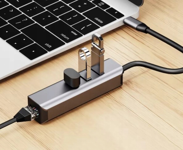 Karta sieciowa umożliwia przejście z gniazda typu USB-C do gniazda Ethernet RJ-45 oraz 3x USB 3.0. Adapter wspiera wszystkie najnowsze technologie umożliwiające najszybszą prędkość przesyłania danych (Gigabit Ethernet), dzięki czemu możesz przesyłać dane z prędkością do 1000 Mbps. Nasza przejściówka pełni dodatkowo rolę huba USB 3.0, dzięki czemu jesteś w stanie rozbudować swojego laptopa o dodatkowe 3 porty USB 3.0.