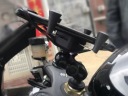 Uchwyt montowany jest bezpośrednio w główkę ramy motocykla, co zapewnia stabilność i minimalizuje drgania podczas jazdy. Instalacja odbywa się poprzez włożenie tulei do otworu główki ramy, a następnie dokręcenie uchwytu dla pewnego i bezpiecznego mocowania. Ładowarkę podłączamy bezpośrednio do akumulatora za pomocą przewodów oczkowych, co zapewnia stałe i niezawodne zasilanie urządzenia.
