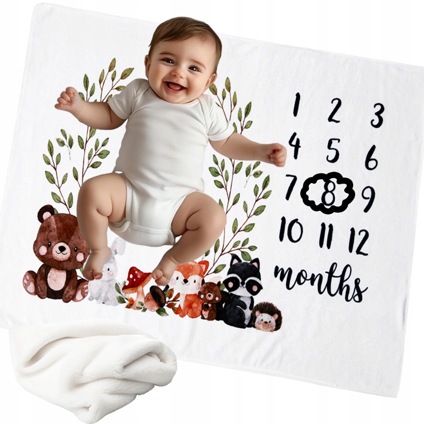 ✅ Miękki kocyk z możliwością zaznaczenia aktualnego wieku dziecka jest świetnym gadżetem ułatwiającym wykonanie zestawu pamiątkowych fotografii rosnącego maluszka.