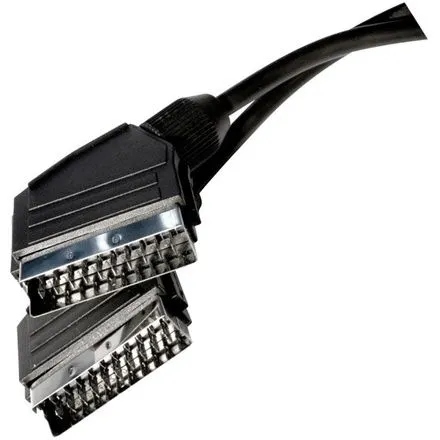 Przewód SCART z wtyczkami SCART. Przewód ma długość 1 m. Przewód SCART całkowicie ekranowany w celu redukcji zakłóceń elektromagnetycznych. Przewód SCART przeznaczony do DVD, RECEIVER, VCR, FLAT TV, TV.