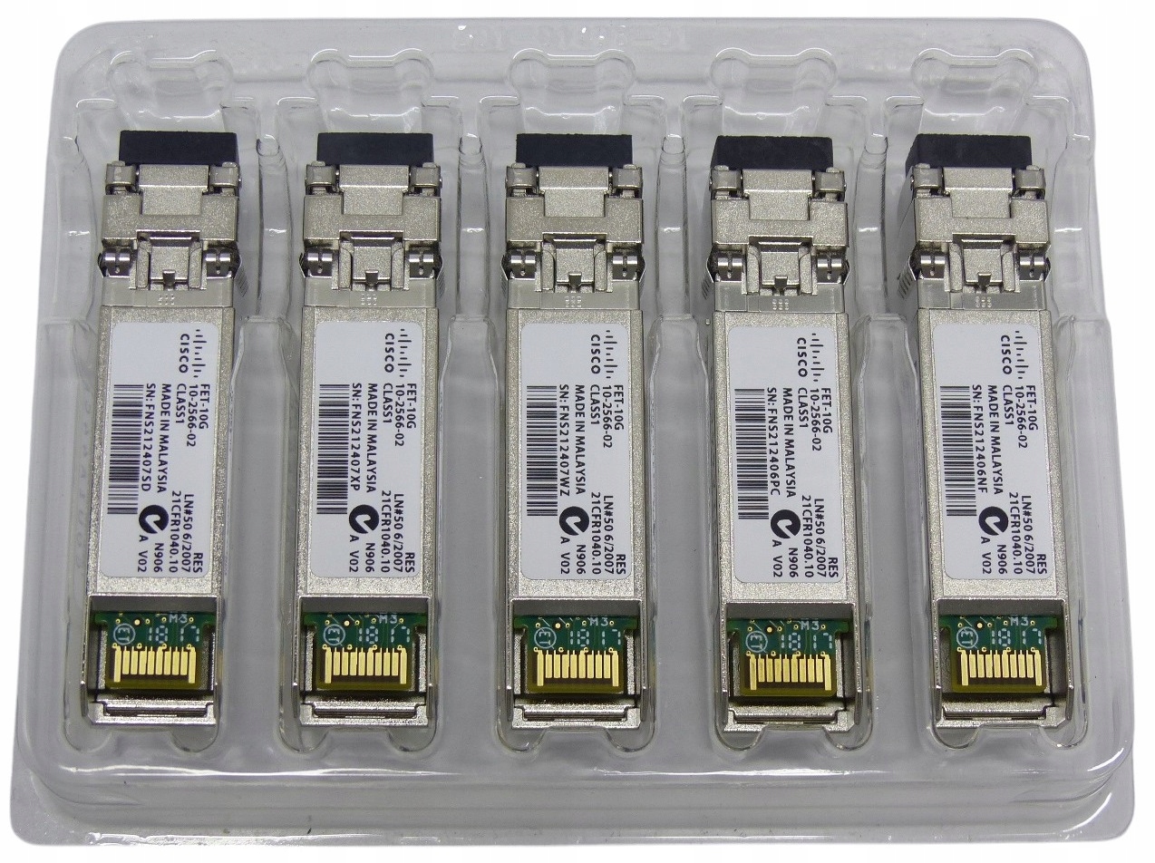 Moduły Cisco FET-10G 10-2566-02 pochodzące z zapasów części serwisowych. Mogą być nowe lub używane. Wszystkie wyglądają bardzo dobrze, jak na załączonych zdjęciach.