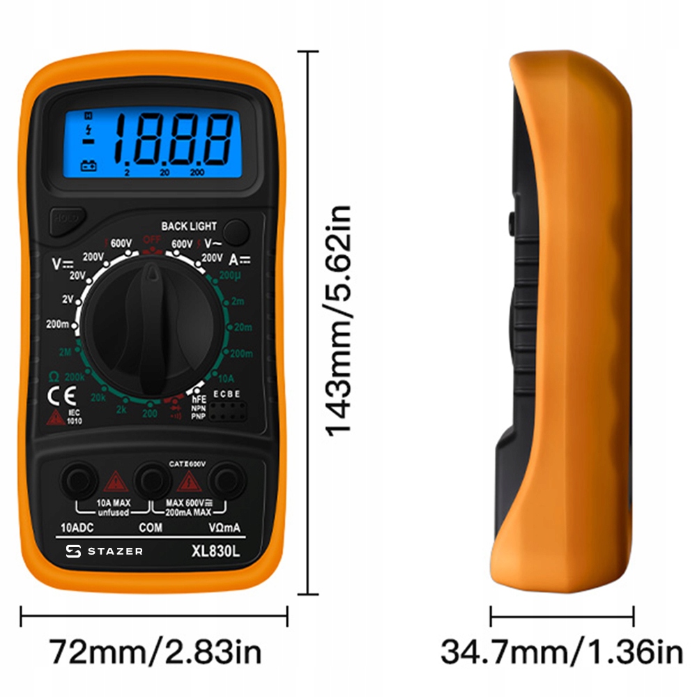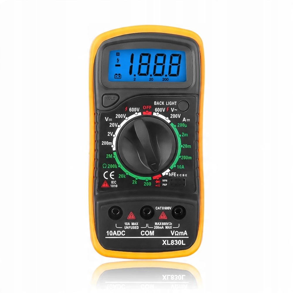 PROFESJONALNY MULTIMETR MIERNIK CYFROWY NAPIECIA to produkt wysokiej jakości, który doskonale sprawdzi się zarówno w przypadku zaawansowanych elektroników, jak i amatorów. Jest on wręcz niezbędny w każdym warsztacie. Miernik został wyposażony w odporną, gumową osłonę, automatyczny wyłącznik podświetlenia skutecznie zapobiegający rozładowaniu baterii, funkcja zapamiętywania ostatniego pomiaru - przycisk HOLD. W zestawie znajduje się przewody pomiarowe oraz instrukcja obsługi.