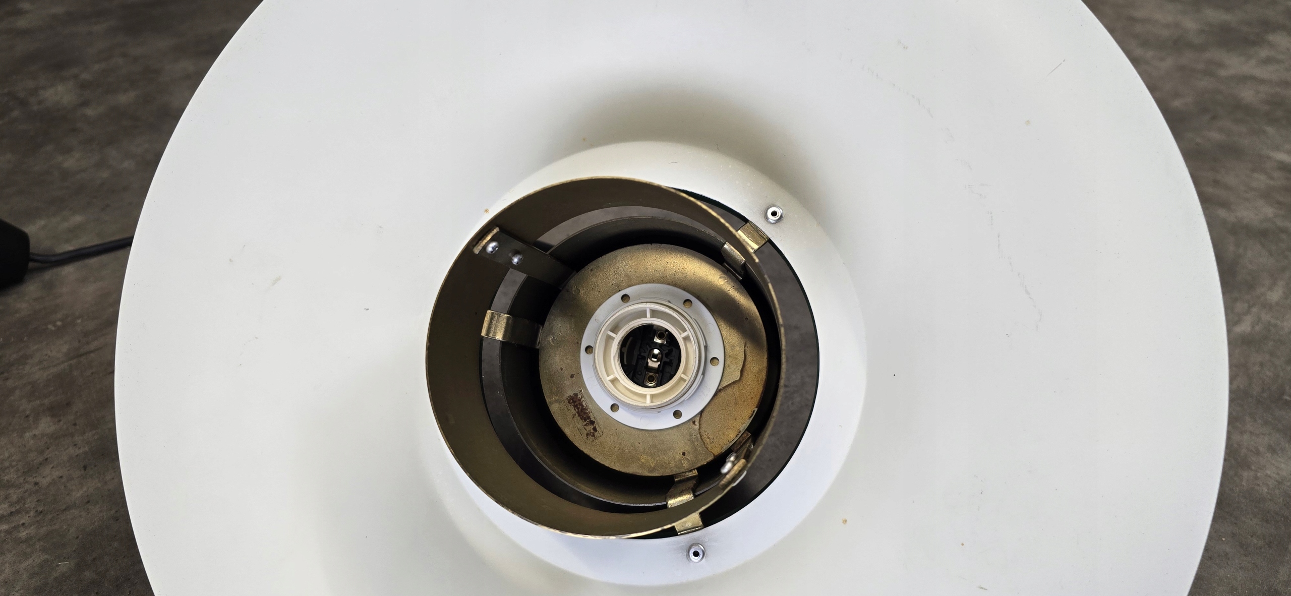 Lampa brudna i zakurzona, ale sprawna, mozna ja uzytkować po wyczyszczeniu lub poddac renowacji, oryginał z epoki , nie jest to wyrób współczesny, ani chińska kopia,podaje wymiary samej lampy bez przewodu zasilajacego , średnica 35 wysokość 17.
