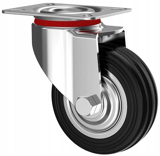 Koło obrotowe wykorzystywane między innymi do wózków platformowych. Bardzo proste w montażu, przykręcane 4 śrubami. Wymienia się je bardzo szybko, dlatego będzie doskonałym rozwiązaniem nie tylko jako główne ale również jako koło zapasowe. Każdy posiadacz wózka platformowego powinien mieć je pod ręką w razie potrzeby wymiany, szczególnie kiedy przewozi ciężary po wymagającym terenie.