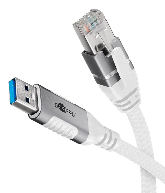 Kabel LAN umożliwia stabilne, przewodowe połączenie internetowe z urządzeniami USB-A bez własnego kabla sieciowego