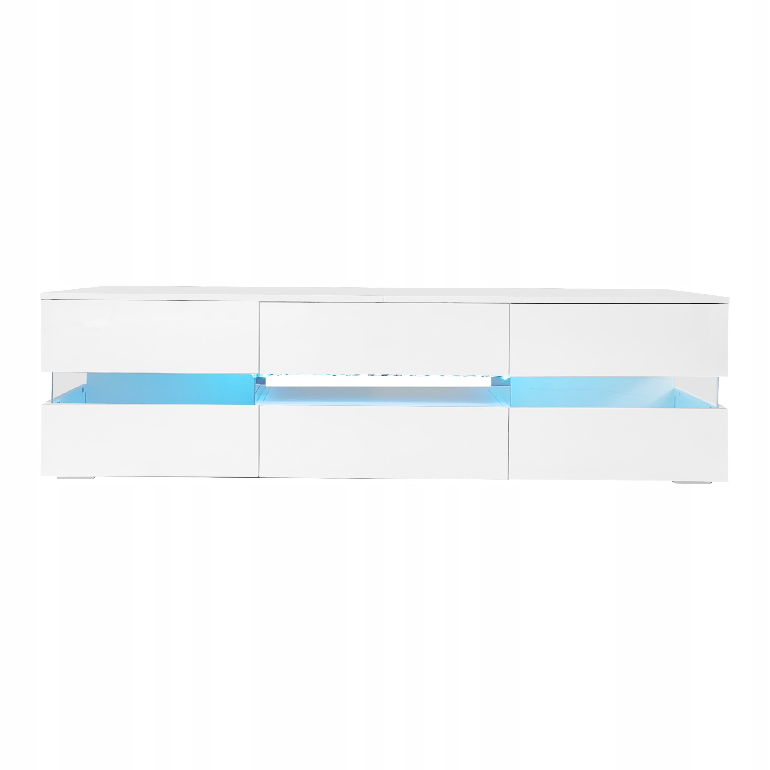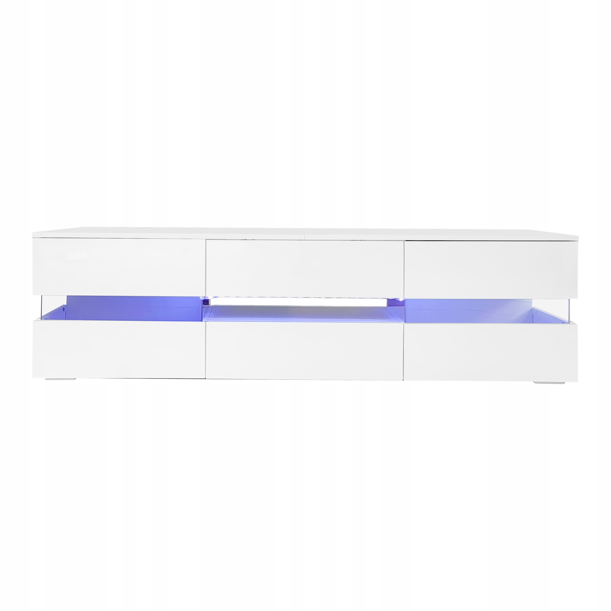 1. Biały, połyskujący stolik pod telewizor wyposażony jest w stylowe oświetlenie LED, które doda Twojemu salonowi luksusowego charakteru.