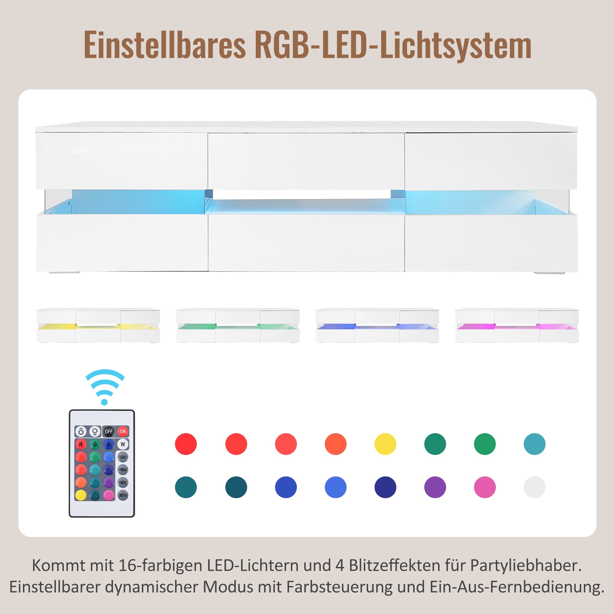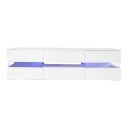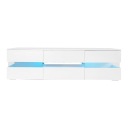 Nowoczesna biała szafka pod telewizor z połyskiem 160x39x45cm z oświetleniem LED 2 drzwi 1 szuflada otwarta przegroda odpowiednia do telewizora 70" - z wkładką ze szkła akrylowego i otwieraniem przez naciśnięcie, szafki pod telewizor z połyskiem