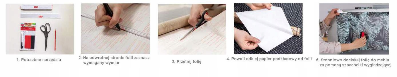 Ta folia winylowa typu peel and stick jest łatwa w aplikacji, ścieralna, trwała i odporna na temperaturę do 75 stopni C.