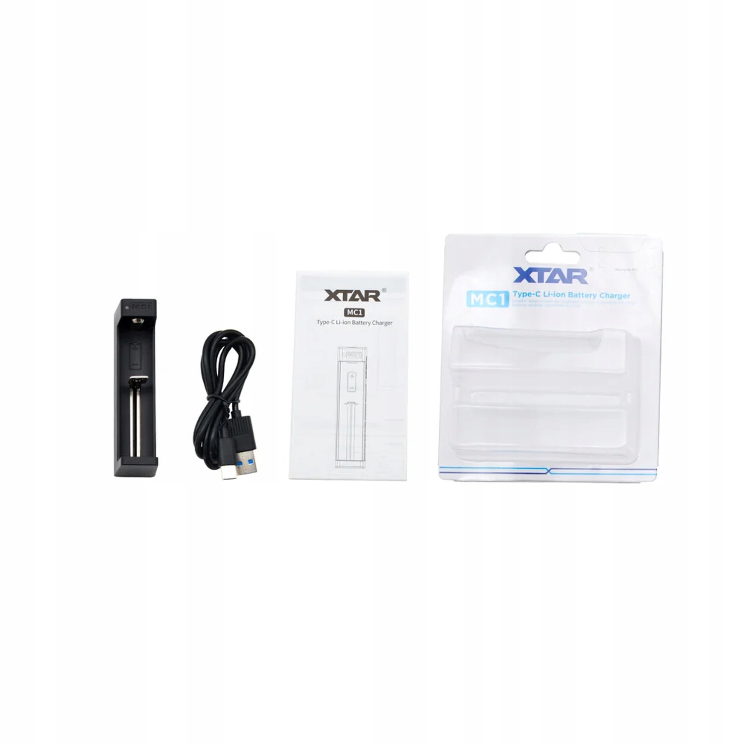W komplecie z ładowarką Xtar MC1 otrzymujemy kabel USB-C oraz pokrowiec zabezpieczający ładowarkę na czas transportu. Do zestawu nie jest dołączony zasilacz. Do zasilenia ładowarki wystarczy dowolna ładowarka z kablem USB-C, np. Zalecana minimalna moc ładowarki to 0,5A (500mA).