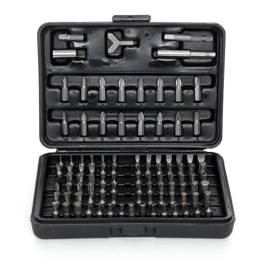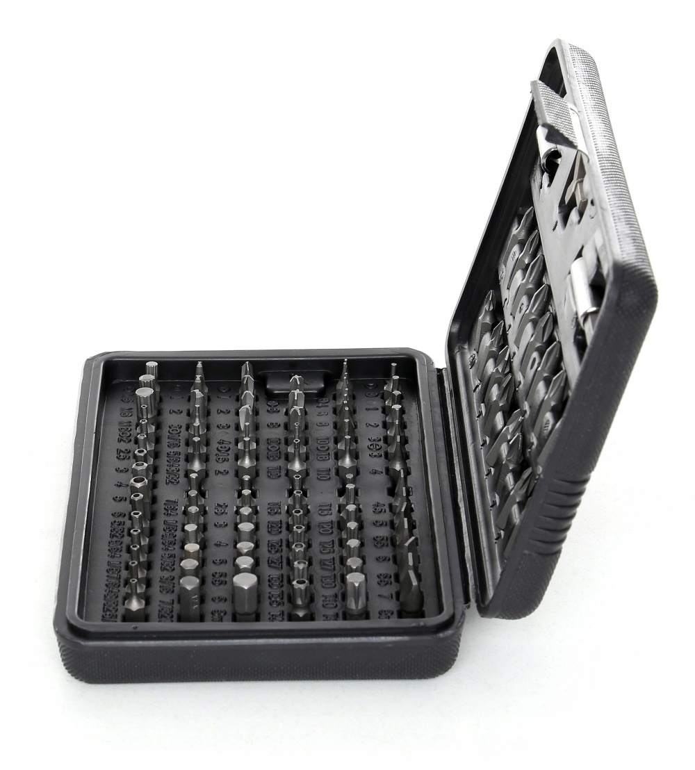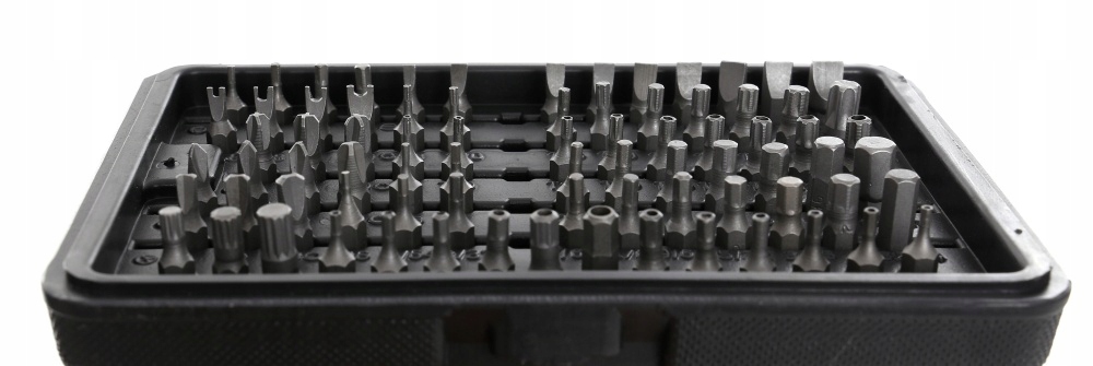 Zestaw bitów 100 el. wkrętaki torx Idealny zestaw dla mechaników. Znajdzie zastosowanie w serwisach samochodowych, warsztatach ślusarskich, mechanicznych, majsterkowiczów itp.