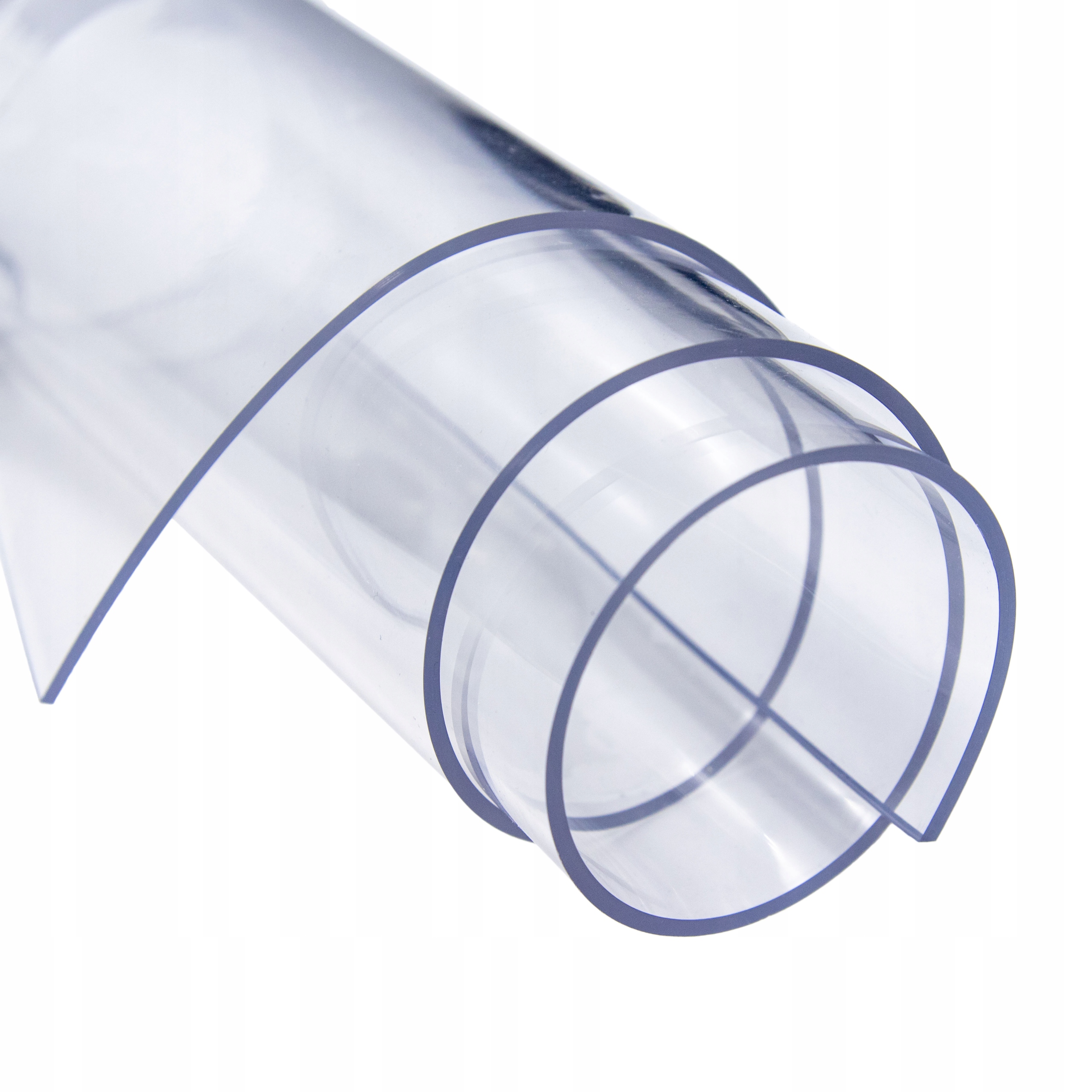Całkowicie przezroczysta, gruba. Twarda, ale można ją zwinąć w rulon. Po rozwinięciu sama rozprostowuje się całkowicie.